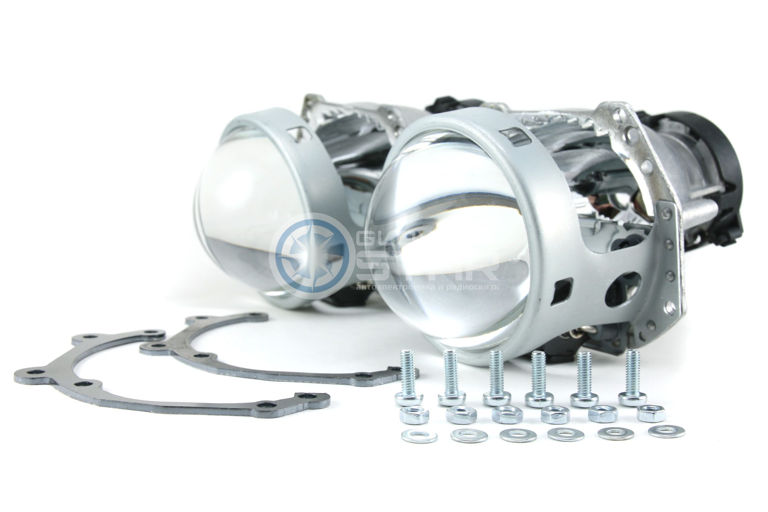 Комплект биксеноновых линз Hella 3R с переходными рамками для замены линз на автомобилях Toyota.