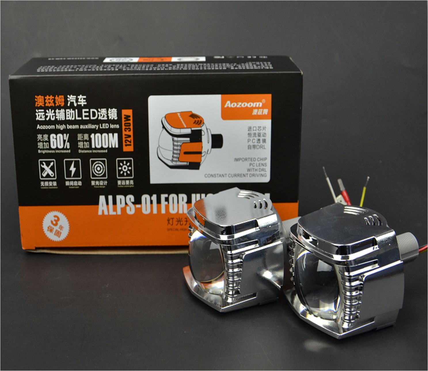 Светодиодные модули LED Aozoom ALPS-01 дальнего света, маски с DRL и функцией поворотника, крепеж H7/H4, 12v 30W (комплект, 2шт)