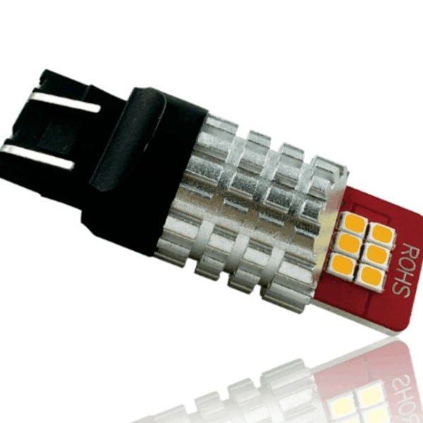 Светодиодная лампа 7443 (W21/5W) Red красного цвета с функцией стробоскопа. Два режима: габарит + стоп сигнал.